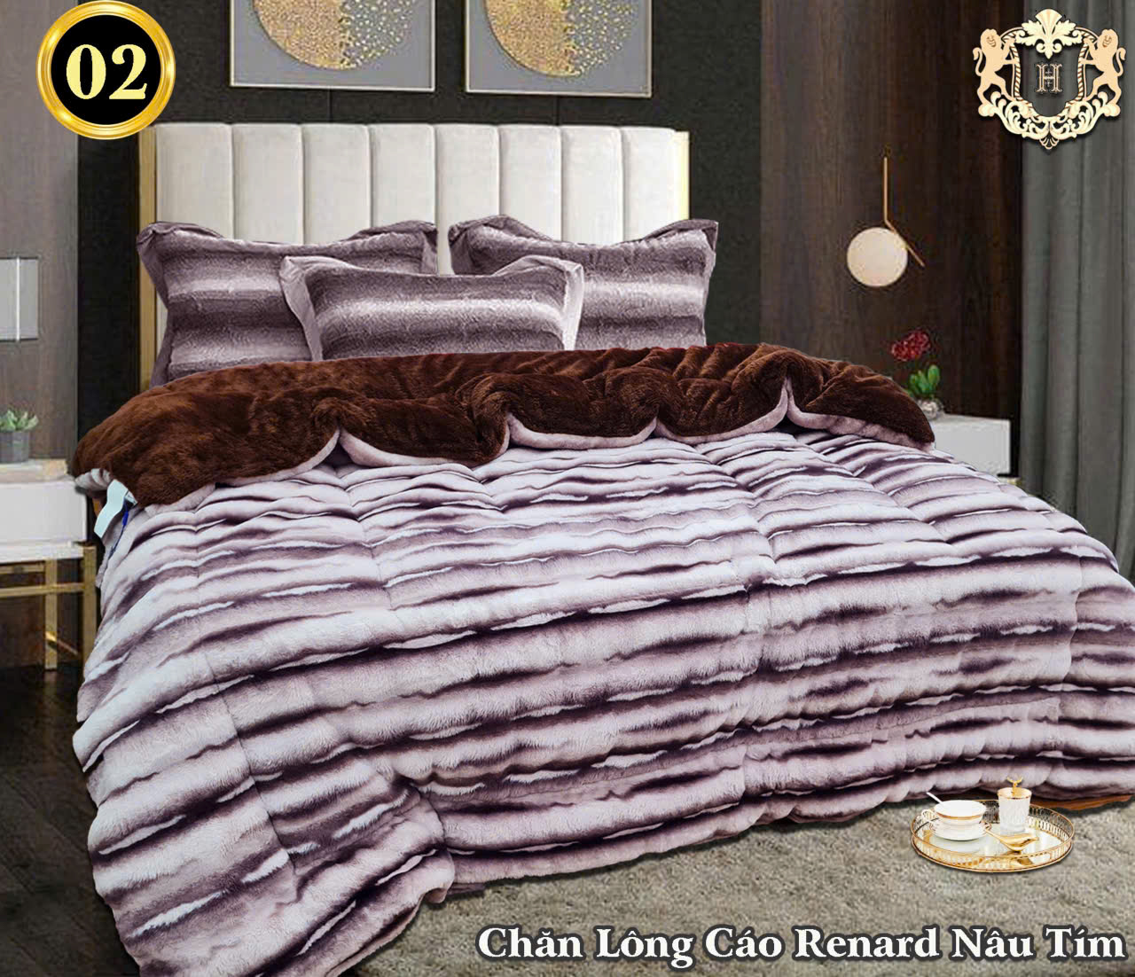 Chăn lông Cáo Renard Nâu Tím- Harbour Silk